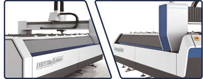 1、橋聯激光切割機床身采用鋼板箱體式焊接工藝,經二次退火及大型龍門精 密冷加工,精度保持時間更長;